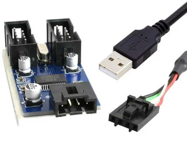 USB 2.0 Type-A Male 1 to 2 Female Motherboard 9pin Header Extension HUB Connector Adapter Port Multilier