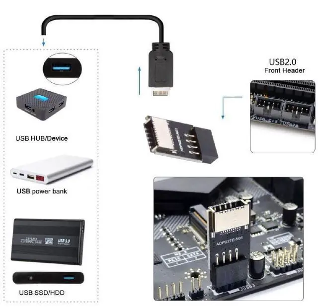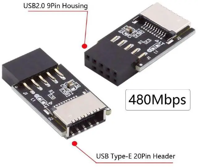 USB 3.1 Front Panel Socket Key-A Type-E to USB 2.0 9Pin 10Pin Mainboard Header Male Extension Adapter