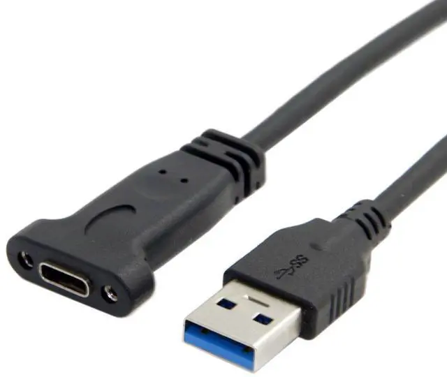 USB-C USB 3.1 Type C Female to USB 3.0 A Male Data Cable 20cm with Panel Mount Screw Hole
