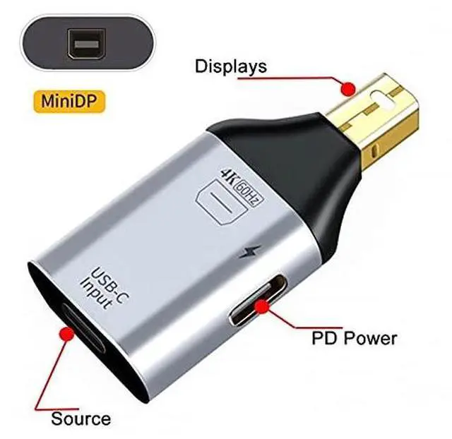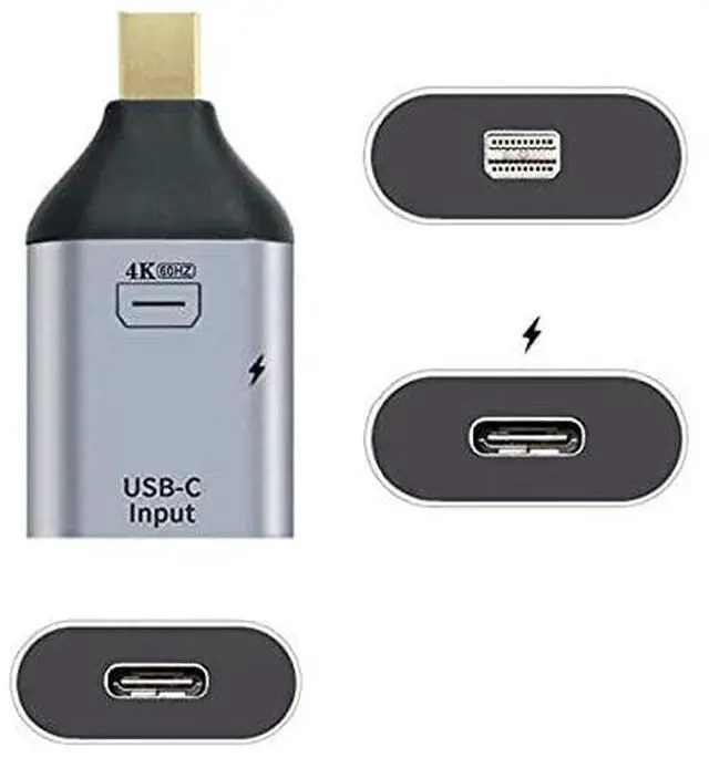 USB-C Type C Female Source to Mini Displayport Sink HDTV & PD Power Adapter 4K 60hz 1080p for Tablet & Phone & Laptop