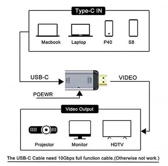USB-C Type C Female Source to HDMI Sink HDTV & PD Power Adapter 4K 60hz 1080p for Tablet & Phone & Laptop