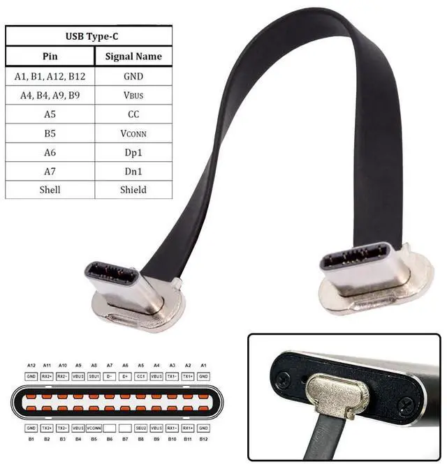Dual Angled Ultra Slim Flat USB-C Type C to USB-C Power USB2.0 Data Cable 65W Fast Charge for Laptop Tablet Phone