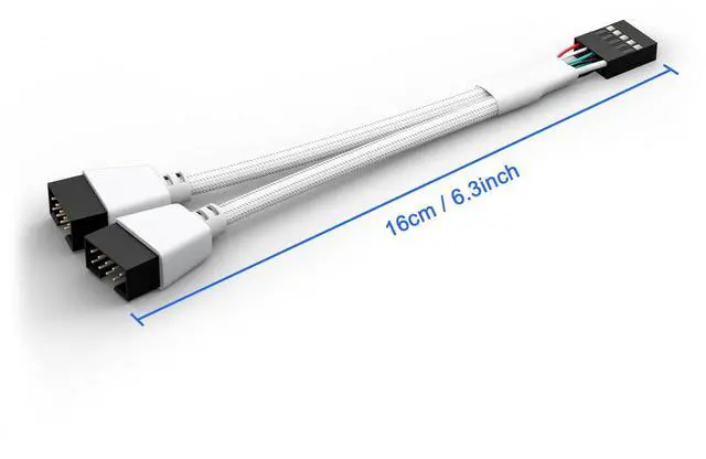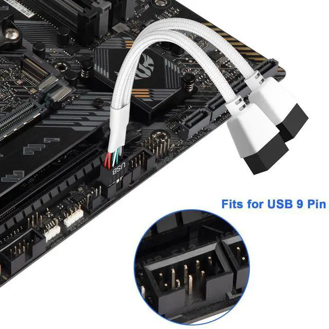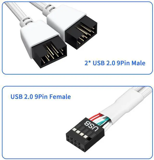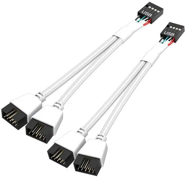 2 Pack Motherboard 9 Pin USB 2.0 to Dual 9 Pin Extension Splitter, Motherboard USB Splitter 9 Pin Header Cable, USB2.0 Header Splitter for Internal Computer Motherboard (Braided White)