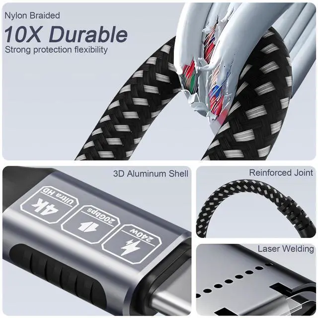 Tired of short cables and slow charging? Our 20FT USB-C cable is engineered to redefine your connectivity experience. Combining super-fast 240W charging, blazing 20Gbps data transfer, and stunning 4K video in one incredibly long, durable design, it's the only cable you'll ever need.