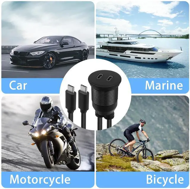Package:1 * Dual USB C3.1 Male to Female Threaded Flush Mount Waterproof Cable, 1 * Shoulder Nut, 1 * Hex Nut, 1 * Waterproof Dust Cap