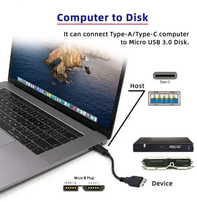 Work for Type-C or Type-A Host to Micro USB 3.0 SSD Disk device.
