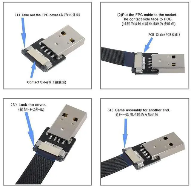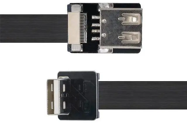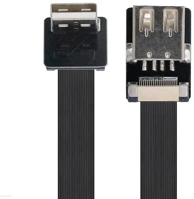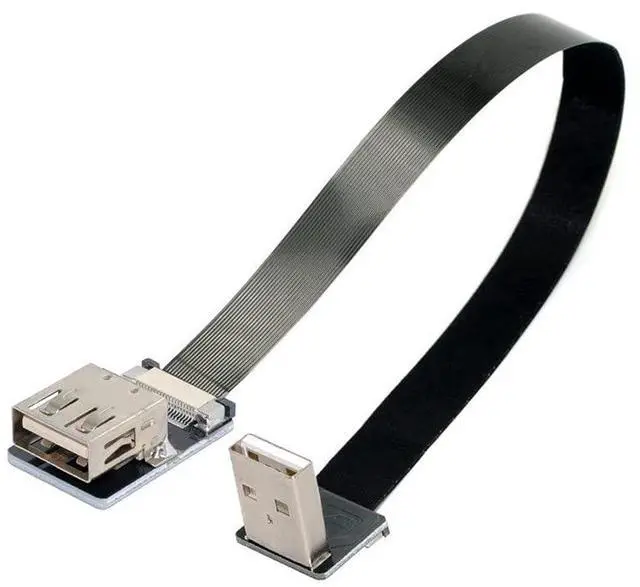Down Angled USB 2.0 Type-A Male to Female Extension Data Flat Slim FPC Cable for FPV & Disk & Scanner & Printer