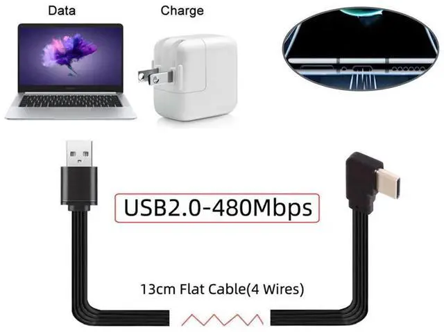 13cm USB 2.0 Type-A Male to USB-C Type-C Left Right Angled 90 Degree Data Flat Slim FPC Cable for FPV & Disk & Phone