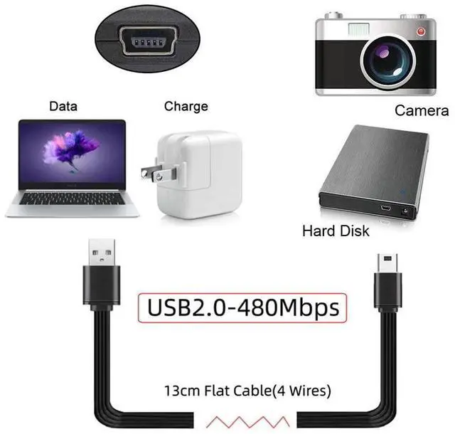 13cm USB 2.0 Type-A Male to Mini 5Pin USB Male Male Data Flat Slim FPC Cable for FPV & Disk & Phone