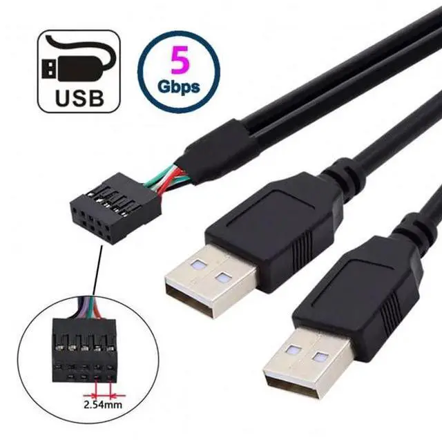 Motherboard 9Pin 10Pin Female Housing to Dual USB 2.0 Male Type-A Cable 50cm
