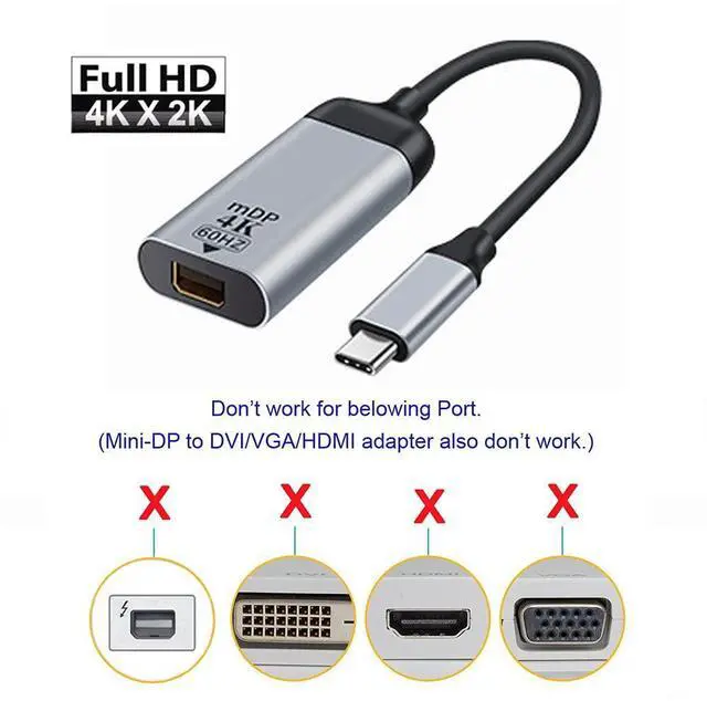 USB-C Type C to Mini DP Displayport Converter Adapter 4K 2K 60hz for Tablet & Phone & Laptop