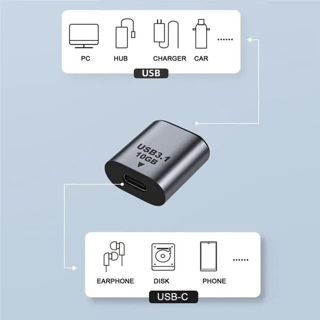 USB-C USB 3.1 Type C Female to USB 3.0 A Female Data Adapter 10Gbps Data Power for Laptop Tablet Phone