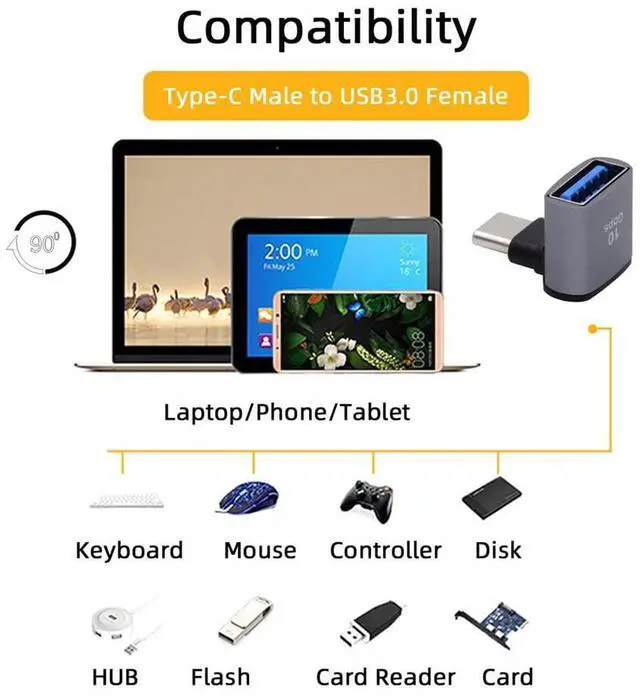 Up Down Angled USB-C Type-C to USB 3.0 Female OTG Adapter 90 Degree for Laptop & Tablet & Phone