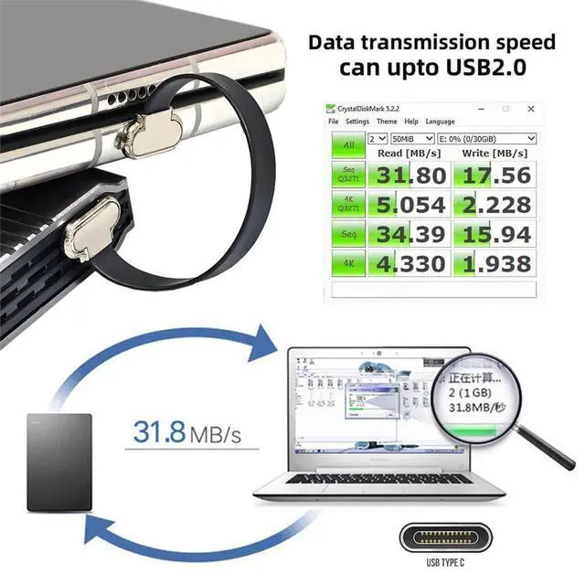 Hi-speed up to 480Mbps for USB Type-C 2.0 Version,Support two-way data transmission at the same time.