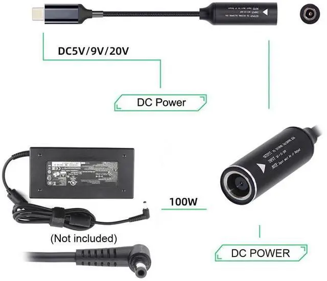 DC Jack 7.9X5.4mm Input to USB-C Type-C Power 100W Charge Cable for Laptop Phone PD9V 5V 20V