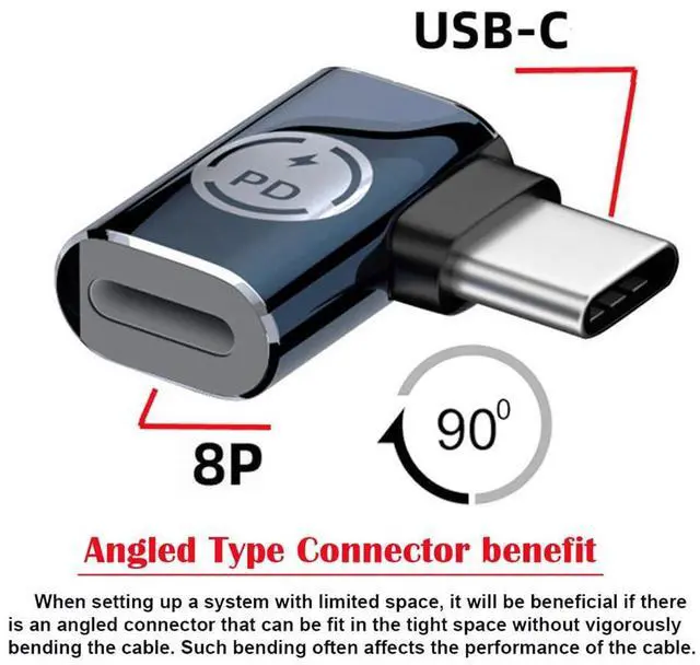 The angled type Allowing you to connect it to a female port, even if space around the port is limited.