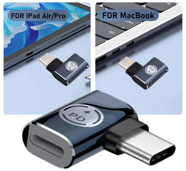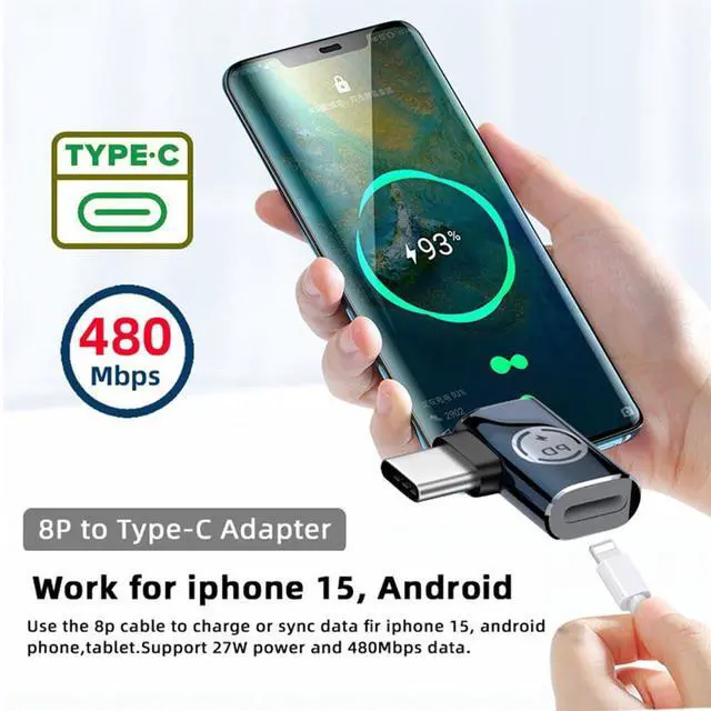 USB-C Type C Male to 8P Female 27W Power 480Mbps Data Adapter Angled Compatible with iPhone 15 & Android & Tablet