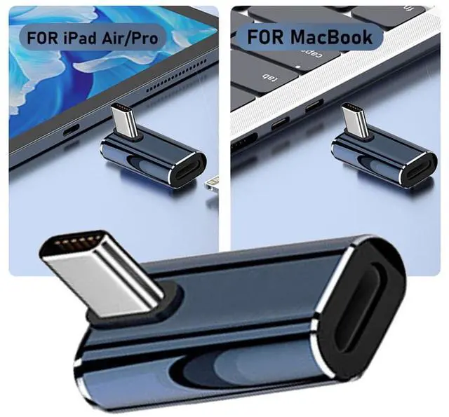 USB-C Type C Male to 8P Female 27W Power 480Mbps Data Adapter Low Profile Angled Compatible with iPhone 15 & Android & Tablet