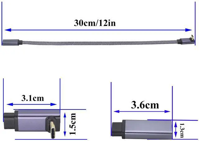Up&Down 90-degree braided bending design USB C 3.1 to USB C 3.1 flat nylon cable: with L shape design, prevent the bending and breaking. Better to management cable in some situations, especially in tight spaces like cars,corners,etc.
