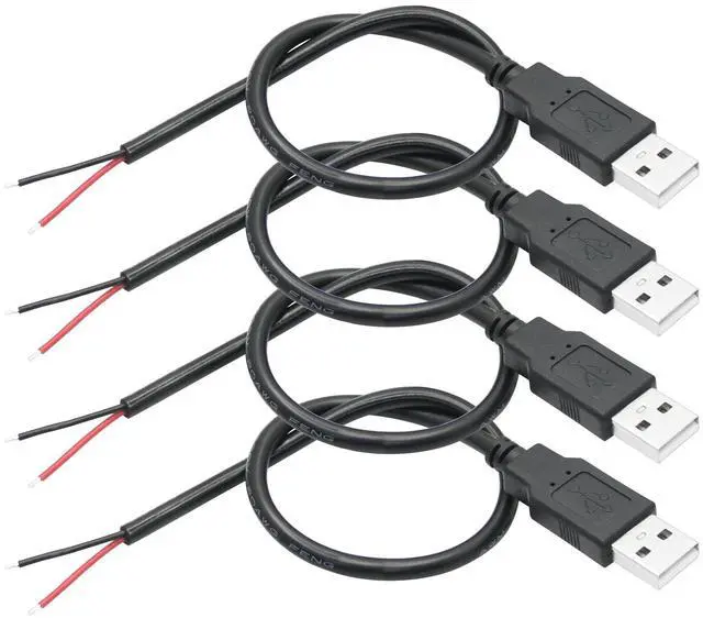 4Pcs USB A Male to 2 Pin Bare Wire