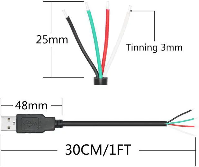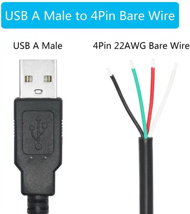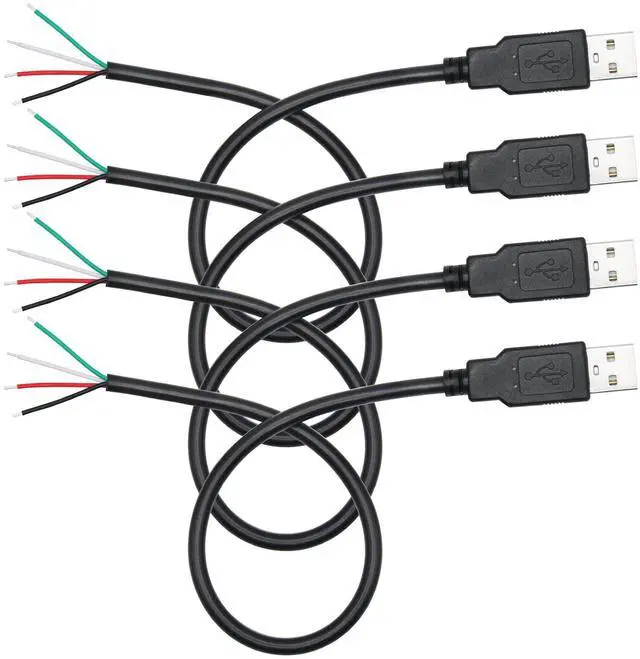 4Pcs Short USB A Male to 4 Pin Bare Wire
