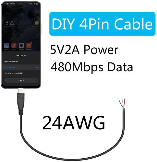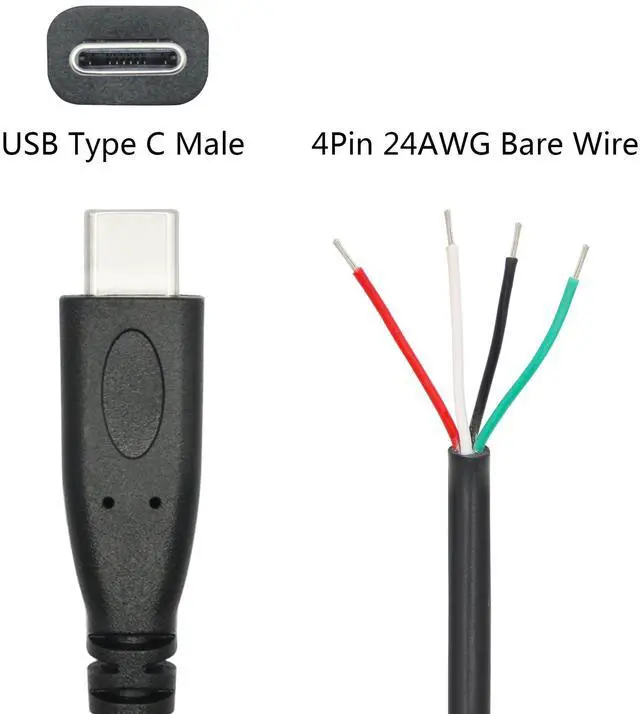 4Pcs Short USB C to 4 Pin Bare Wire