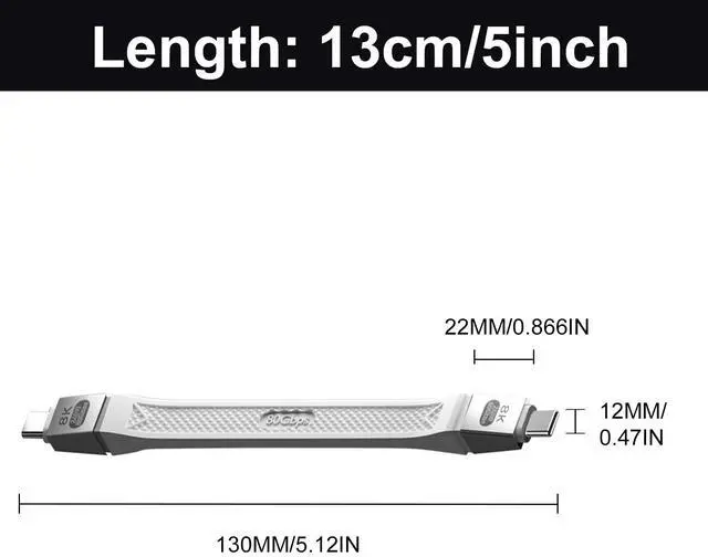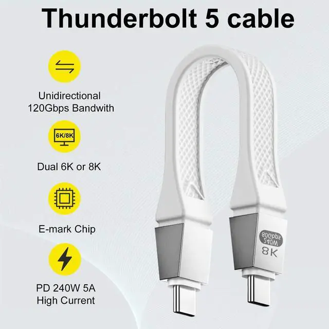 80Gbps High Speed TransferShort usb c to usb c cable can support 80Gbps of bi-directional data transfer, 120Gbps of video bandwidth. And this thunderbolt 5 cable is perfect for professionals, gamers, and anyone who demands fast and reliable data transfer.