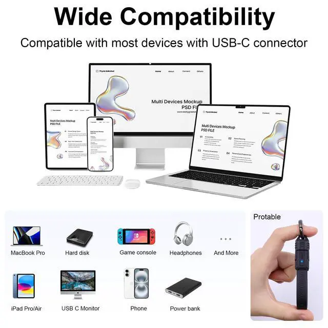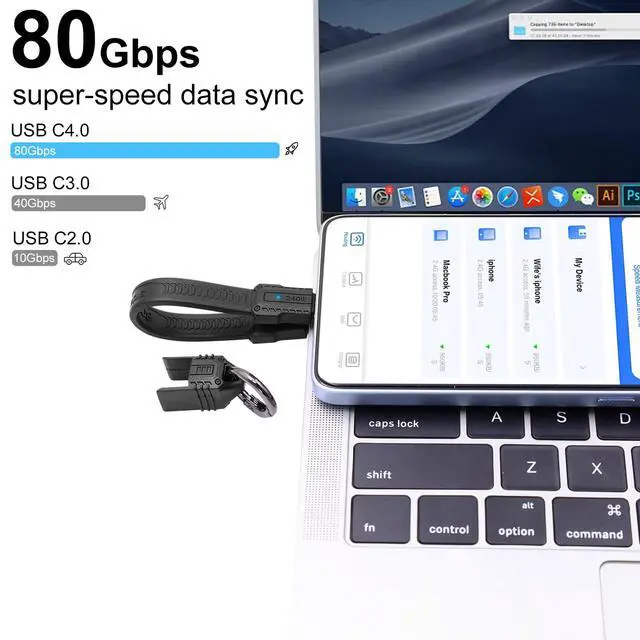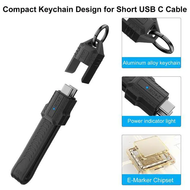 USB 4 Cable Portable KeychainOur short usb c to usb c cable has the portable keychain design, it support you to easily snap the heads together and hang it on your keyring. easy to use in the travel, home or office and charge wherever you go.