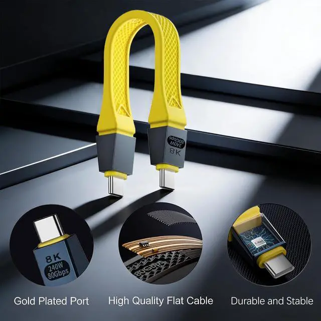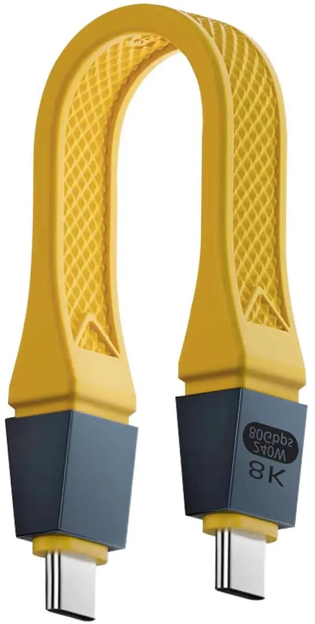 Vszerda Short USB C to USB C Cable 5Inch, 80Gbps Thunderbolt 5 Cable Up to 120Gbps Bandwidth Boost for 16K, Dual 8K/6K, 240W Type C Cord in Yellow, for Thunderbolt 4/3,USB 4, SSD, MacBook, Dock