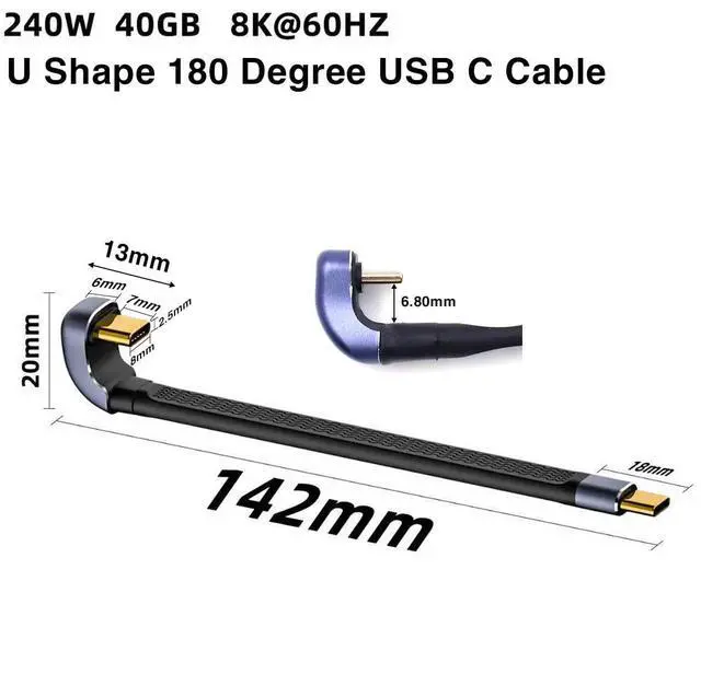 - [Small and portable]Plug and Play. No external driver or software installation needed. What you will get: 1pcs of USB C 180 Degree Cable. usb c interface size 8mm*2.5mm*7mm, and the u shape size : 6.8mm.