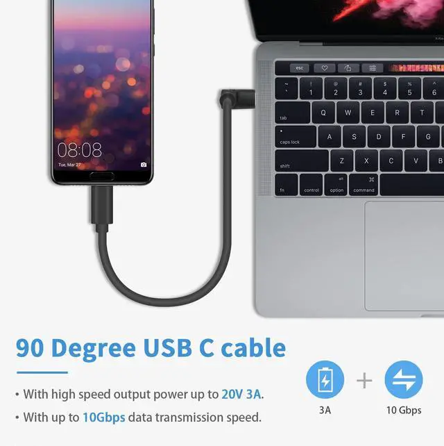 [Type C to Type C Cable ]: Support Max 20V voltage 3A current and 60W Power Charging, and up to the high speed of 10Gbps data transfer. Plug and play, no software needed, with Up & Down Angled 90 Degree design of Gen 2 (10Gbps) USB 3.1 Type C male extension cable(3A).