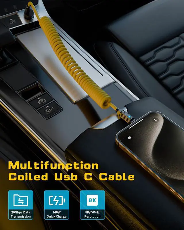 • What You will get: 1pcs x Coild USB Type C cable is perfect for travel and portable, it is good for Connecting computers to smartphones or tablets for simultaneous charging and data transfer. With LED indicators to display the power status, and Aluminum-alloy Shell Connector, also has a built-in E-marker smart chip to keep safely delivers.