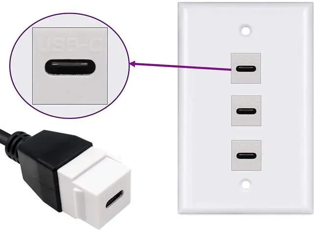USB Type C keystone Insert, USB-C 3.1 adapter will allow you to connect two USB type C cables to work as an extension. Fits any standard keystone wall plate.