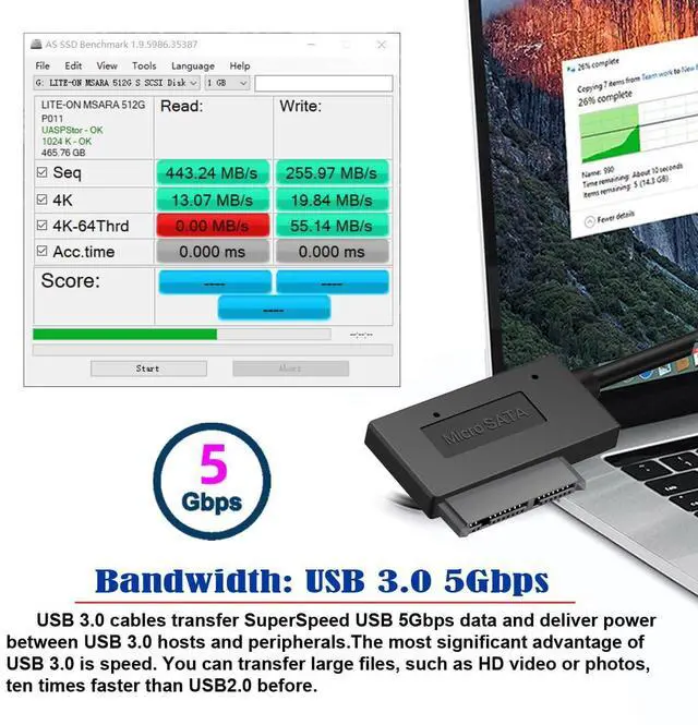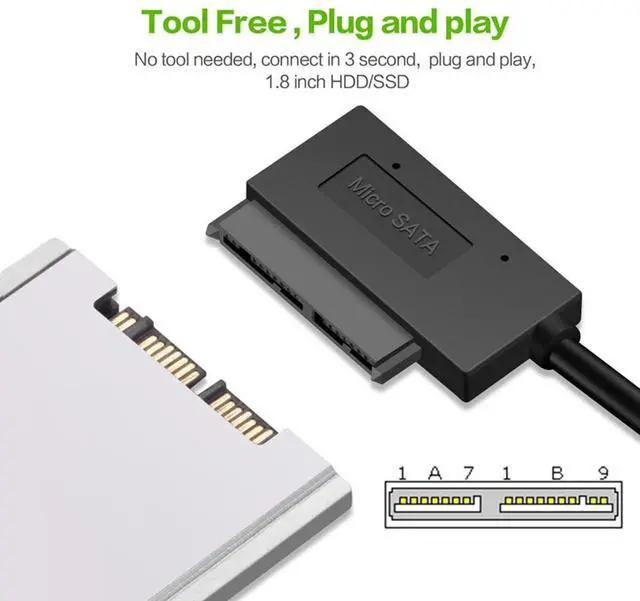 5Gbps Super speed USB 3.0 to Micro SATA 7+9 16 Pin 1.8" Hard disk driver SSD Adapter Cable 10cm
