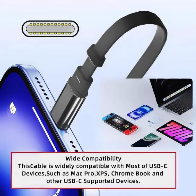 6) Wide Compatibility:This USB Type-C Cable is widely compatible with Most of USB-C Devices, Such as Mac Pro,XPS, Chrome Book and other USB-C Supported Devices.