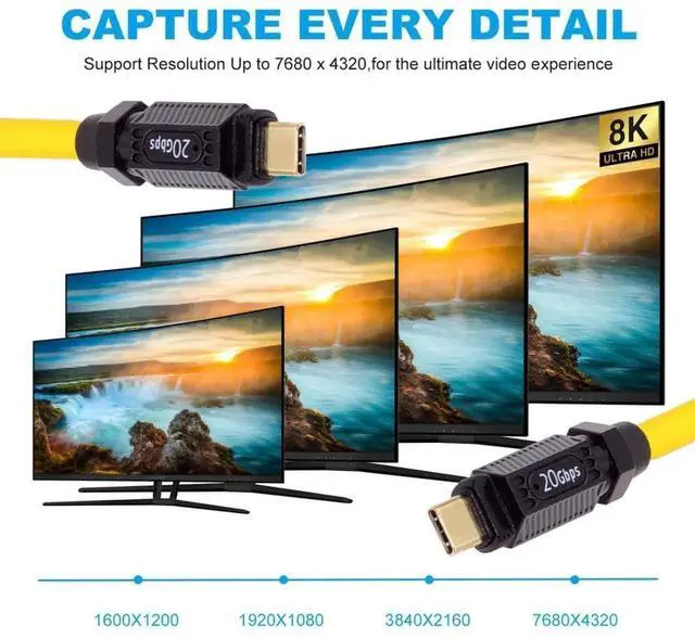 1) Practical 140W Power Delivery: This USB 4 Cable can support Max 140W/100W 28V/20V/5A Charging, It will supply power when your USB-C device is in use. 2) USB4.0 Max 20Gbps Data Transfer Rate: This USB4 Cable can Reach Data Transfer Rate up to 20Gbps,the transmissions speed is twice as fast as Thunderbolt3. 3)8K/5K Ultra HD Video Output: This USB4 Cable enables to connect from your USB4 or thunderbolt3/4 Port equipped Devices to your USB-C Monitors, It supports Single 8K@60hz, 5K@60Hz or 4K@60Hz max. video Resolution in your external displays.(please make sure your monitor's Type-c port support DP Alternate Mode for Video.) 4) Wide Compatibility: This USB4 Type-C Cable is widely compatible with Most of USB-C Devices (Mainly Laptops), Such as Mac Pro 2020,2019,2018,XPS, Chrome Book and other DP Alternated Mode Supported Devices, backward compatible with Thunderbolt3, You can also connect with Hard Drivers and Docking Stations for Data. 5)Ultra Soft: The ultra-soft and flexible high speed cable with 4.8mm diameter fits perfectly in tight spaces, designed for laptop, computer and HDTV applications where flexibility and compact cable routing is required.