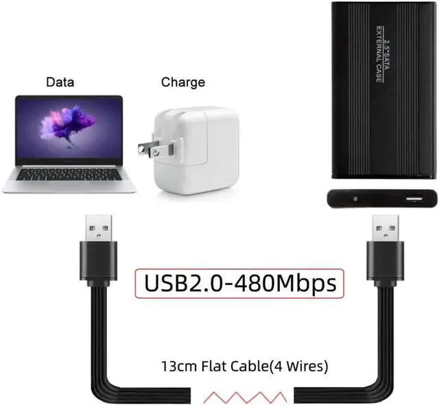 USB 2.0 Type-A Male to USB 2.0 Type-A Male Data Flat Slim FPC Cable for FPV & Disk & Phone 13cm.
