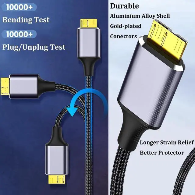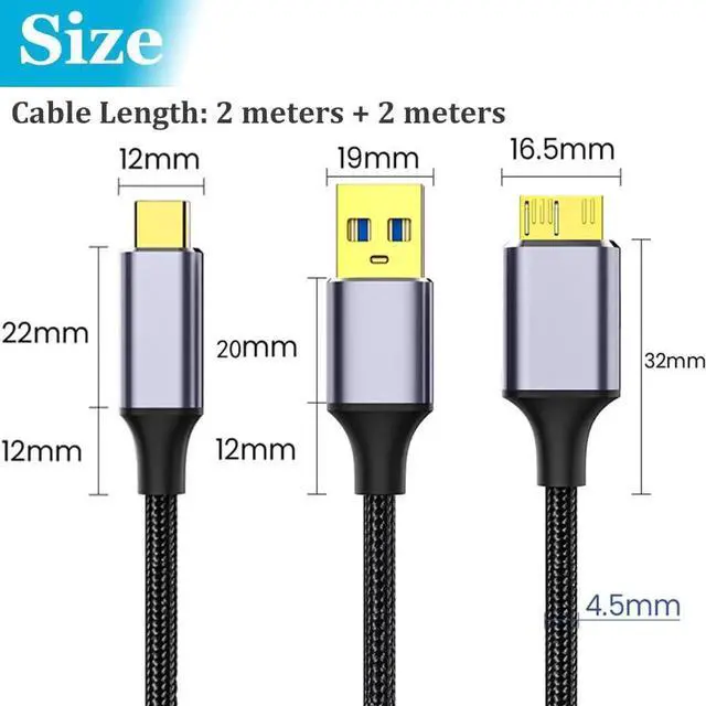 2 Pack Micro USB 3.0 Cable 6.6ft, USB 3.0 Type A Male to Micro B Cord, USB Type C to Micro B Cable Nylon Braided Compatible with Samsung Galaxy S5 Note 3 Camera Hard Drive and More