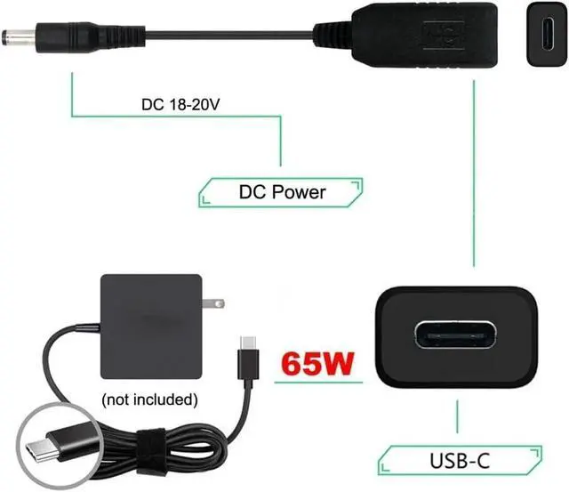 input: Type-C Female, 65W Type-C Charger ; output:DC 5.5 2.5mm & 2.1mm male, DC 18v-20v(not support 5v)