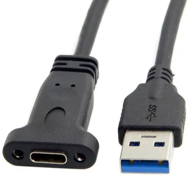 USB-C USB 3.1 Type C Female to USB 3.0 A Male Data Cable 20cm with Panel Mount Screw Hole