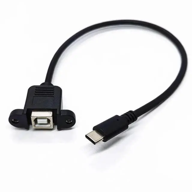 0.3 m USB 2.0 B Female to Type-C 3.1 Male Cable for Printer Computer Case Panel Installation With Screw Hole Connector