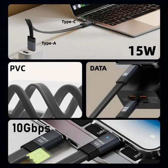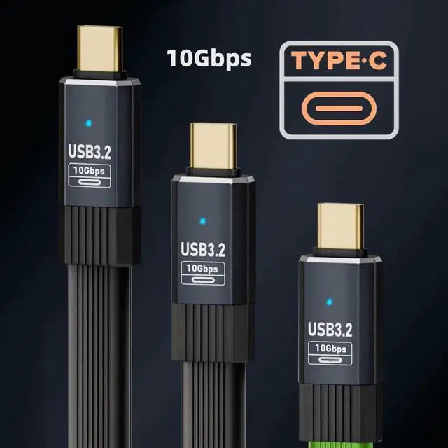 USB3.1 Type-A Male to Type-C Male 10Gbps Flat Slim FPC USB-C Data Power Cable 5V3A for Laptop Phone Disk
