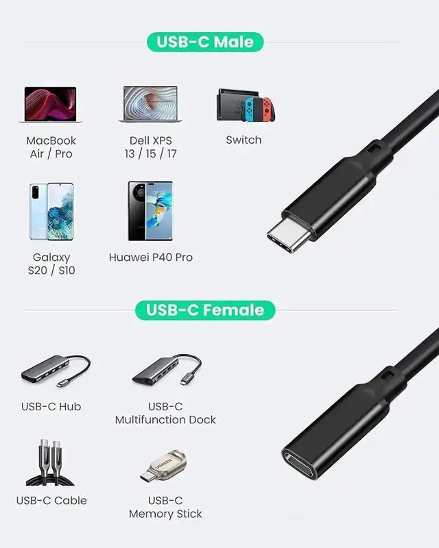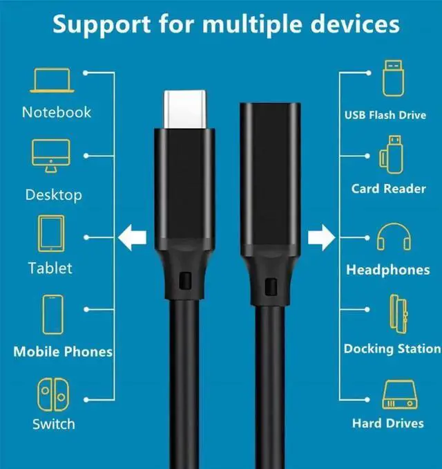![Alt view image 6 of 7 - Vszerda USB C Extension Cable 3.3FT,[USB 3.2 Gen 2*2] 20gbps Male to Female Type C 5A PD240W Fast Charging Cable 4K@60Hz Video cable for MacBook Pro/Air,iPad Pro,iPhone15 16,SSD,Switch [Black]](https://c1.neweggimages.com/productimage/nb640/B4D1D2602070O7IUO08.jpg)