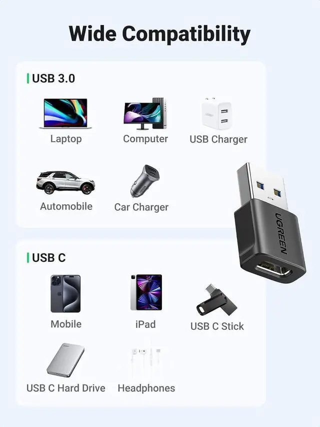10Gpbs Data Transfer & 3A Charging: This USB A to USB C Adapter supports data transfer up to 10Gbps Max, twice as fast as UBS 3.0, providing you with an excellent data transfer and 3A charging experience