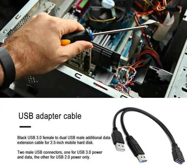 Data Y Extension Splitter Cable USB 3.0 to Dual USB Extra Power Data Extension Cable for 2.5 inch External HDD