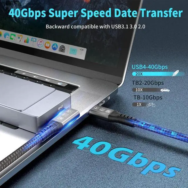 The USB4.0 cable compatibility: USB 4 cable has strong compatibility. USB C to USB C cable is compatible with Thunderbolt 3/Thunderbolt 4/Type-C devices and backward compatible with USB 3.2/3.1/3.0/2.0 devices.USB 4.0 also supports USB C DisplayPort Alt Mode and other standards. It supports i-Phone 15 Pro/Max, MacBook Pro, M1, M2, M3, SSDs, Type-C laptops, monitors, hubs, docks and eGPU devices.