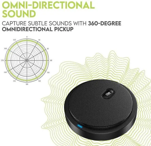 - [Excellent Pick-up Performance] This mic has an excellent 360° omnidirectional audio pickup range, which can pick up your voice from 3m/10ft away. You don't have to speak up to the computer or laptop, let alone repeat what you say over and over again, just go on a normal conversation, like talking face to face.