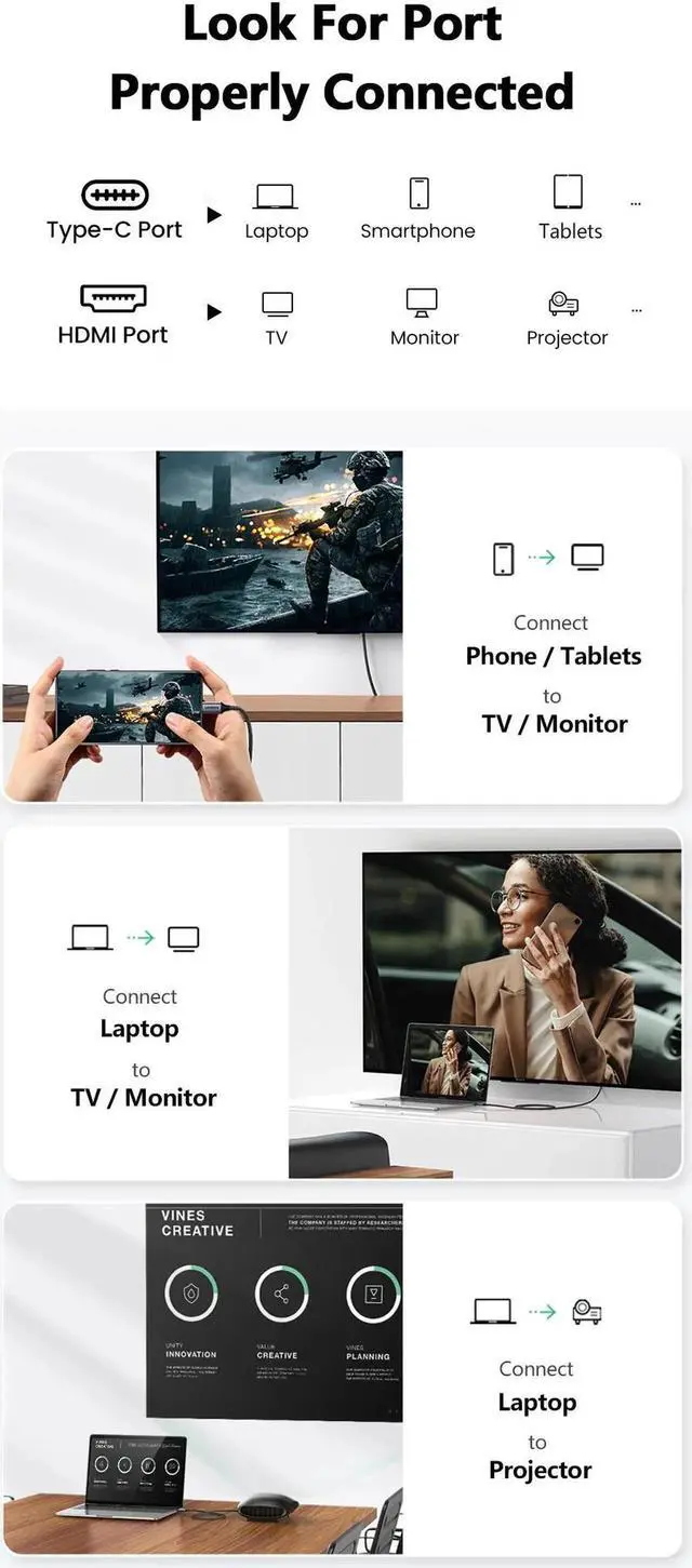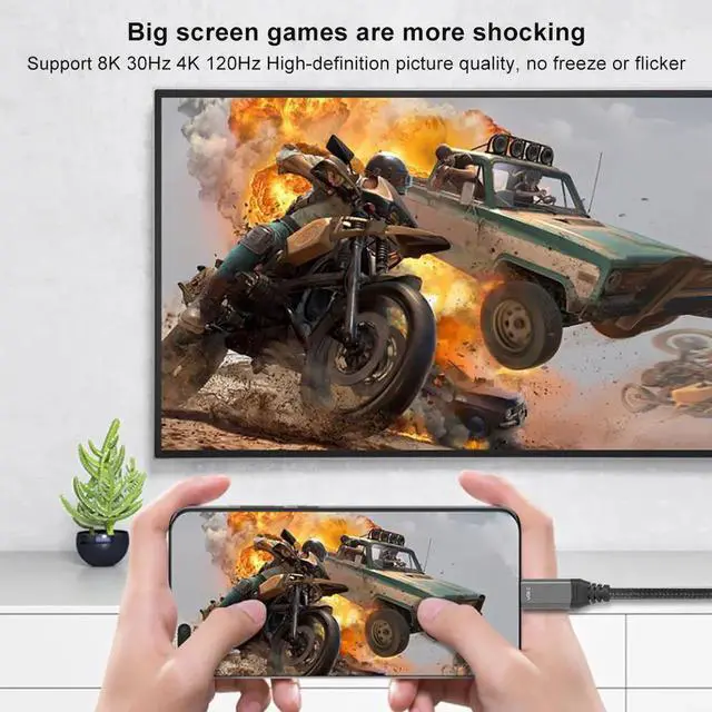UHD Visual Feast: This 8K USB-C to HDMI Cable will provide higher resolution than normal 4K cables on the market. It can easily stream laptops, tablets, desktop consoles and smartphones with USB-C ports directly to monitors, TVs and projectors equipped with HDMI ports, and display at up to 8K@30Hz resolution, Backward compatible with 4K@120Hz, 2K@240Hz, 2K@165Hz.