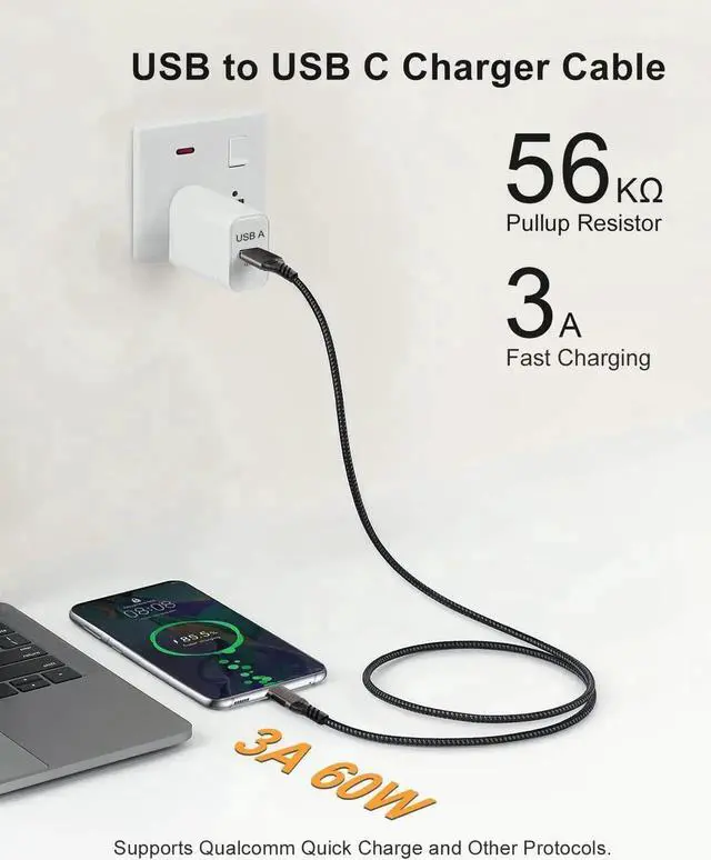 ![Alt view image 6 of 7 - Vszerda USB A to USB C Cable [2 Pack 6.6ft], USB 3.1/3.2 Data Transfer and 60W 3A Fast Charging Cable, for Android Auto S-a-m s-u-n-g Galaxy S23 S22 S21 S20 Ultra and Other Type C Phone Laptop PC Dev](https://c1.neweggimages.com/productimage/nb640/B4D1D26032203D4NE42.jpg)