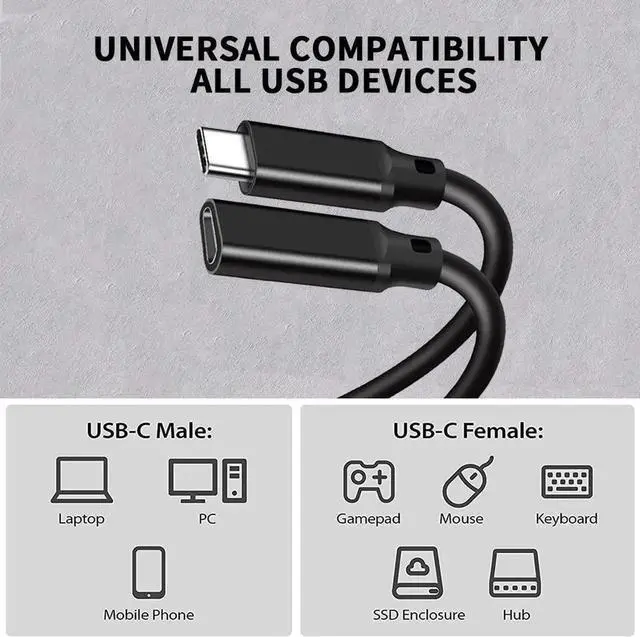 10Gbps/USB 3.2 Data Transmission: USB 3.2 C male to female cable supports data transmission up to 10Gbps, which is 10 times faster than USB 2.0 cable. Transfer 5G files within 5 seconds to get rid of transmission delays.